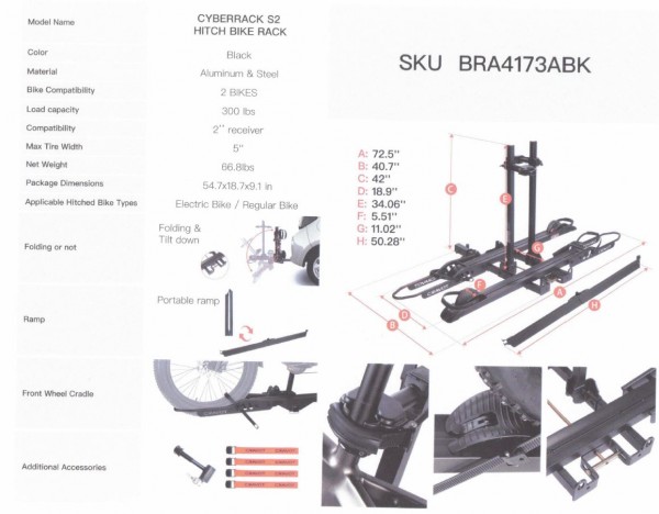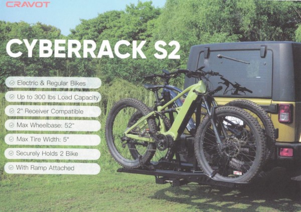 CyberRack S2 offers the ultimate in e-bike transportation. With its reinforced construction, it can handle up to 300 lbs (150 lbs per bike) and features a built-in ramp for easy loading and unloading. The quick-fold mechanism makes storage a breeze, and the foldable ramp removes the need for bulky equipment. Need to reach your vehicle’s trunk? Just tilt the rack backward, giving you easy, unobstructed access to your tailgate. CyberRack S2 redefines convenience for your biking adventures. Foldable & Tiltable for easy access!!