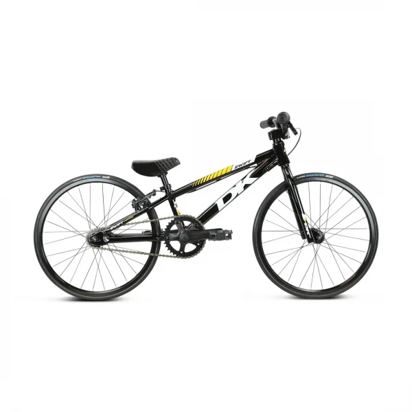 Ready to ride. The DK Swift series bikes are an affordable first step to a life of BMX. The Swift series is sized to fit every rider in your crew, from the 18” Micro for the youngins to the Pro 20" for full-sized humans. Each Swift bike is built on a lightweight aluminum frame with race-proven geometry, sized by model with proportionate handlebars, cranks, and gearing. The Swift Pro features a sturdy chromoly 3-piece crank, while other sizes have a 3-piece alloy crank, sized accordingly. Alloy rims fitted with all-terrain tires put these bikes into motion and provide a smooth ride on any surface. All told, the Swift Series bikes are easy to ride, ready to race, and delivered at an unbeatable price.