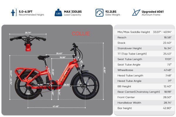 Powerful Motor: Equipped with a 750W BAFANG SUTTO hub motor and a high-capacity 960Wh battery.