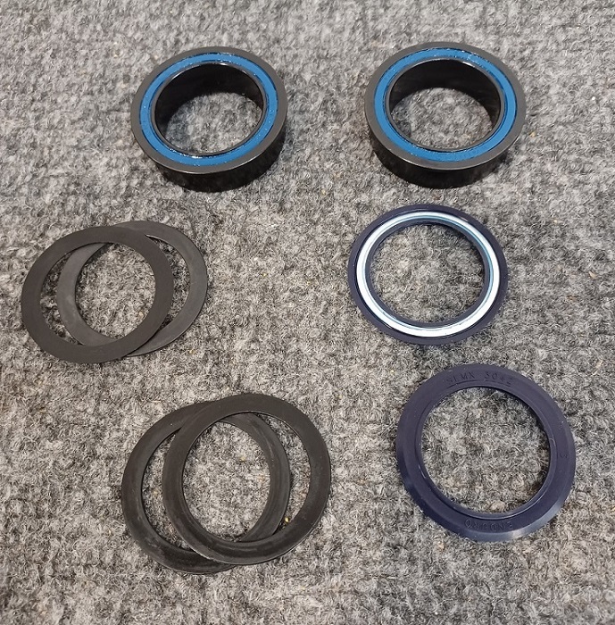 - Includes LH & RH press fit cups, bearings (2), outer seals (2), thick plastic spacers (2) and thin plastic spacers (2)