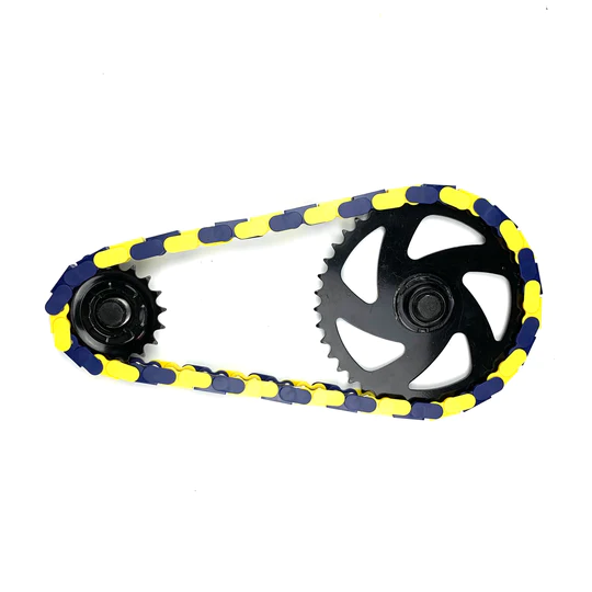The alternative to a regular-looking bicycle chain. We now have a plastic "cap" that snaps right over your