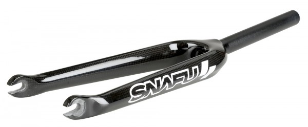 The Snafu 1” Carbon Fiber Race forks are ultra lightweight carbon fiber made using the highest quality materials for superior strength and durability. The fork features a CNC machined aluminum steerer tube, full carbon fiber crown, carbon fiber fork legs for maximum weight savings and cold-forged CNC machined dropouts.