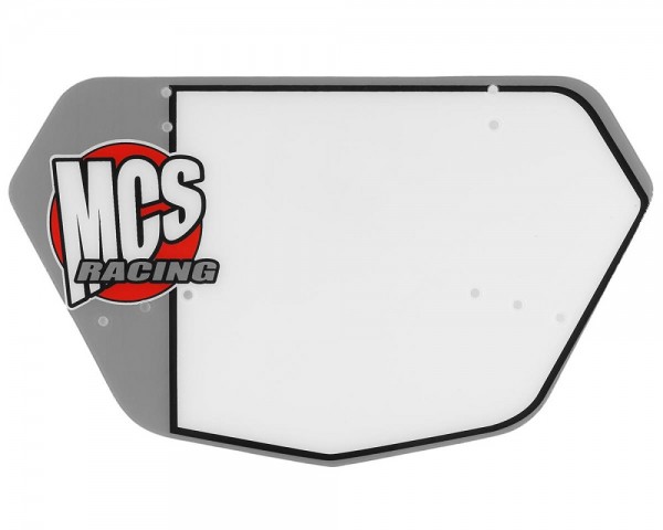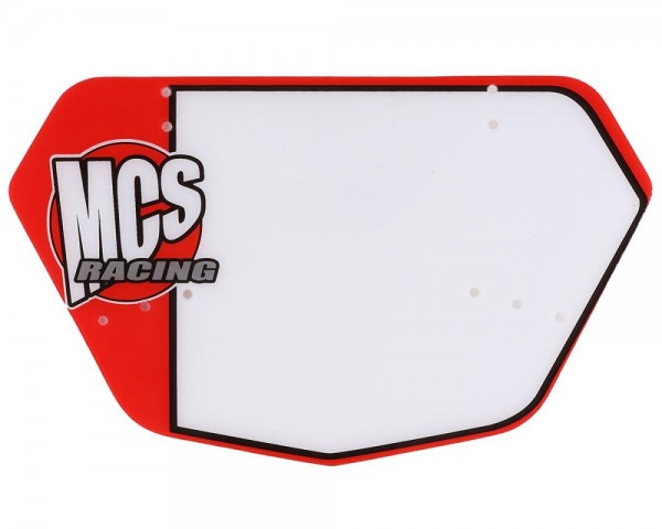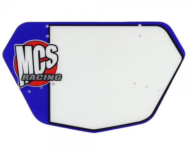 The MCS Racing BMX Pro numberplate is available with a white main background with 3 trim colors: Blue, Gray or Red and the MCS logo. It measures 11.0" wide by 7.0" tall, and includes 4 mounting zip ties.