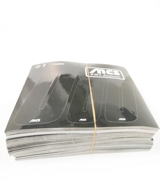 The new rules about numberplates and sideplates with two different size numbers, 3" for the front and 2" for the side, pushed the brains of MCS engineers and designers to innovate and come out with a redesigned presentation for the numbers at a more affordable price. Individual sheets with one 3" number and two 2" numbers. It comes with a MCS BMX Components sticker also!!