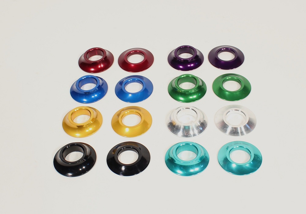 -Made from aluminum and in a veritable rainbow of colors, to give your ride that extra bit of flair.
