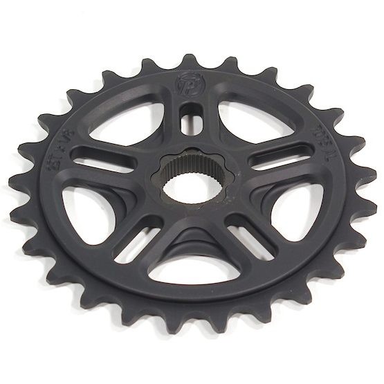 -Requires no sprocket bolt. Instead, it has a hardened CrMo steel insert in that matches up to the 48 splines on the crank axle for pure, direct power transfer.