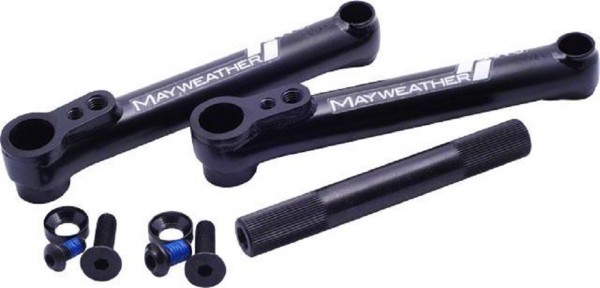 1.4mm wall straight-gauge 4130 chromoly arms with concentric taper. One-pieced forged and broached spindle boss with two tuck pin holes. Drilled and machined 9/16-inch pedal boss with TIG-welded gusset Left-hand and right-hand drive compatible. Hollow heat-treated 4130 chromoly 19mm 48-spline spindle Grade-8 center bolts and tuck pin hardware. Works with Spanish, Mid, Euro bottom brackets (bottom bracket sold separately).