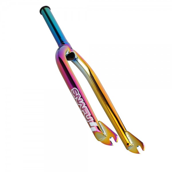 The Snafu 2.4 (24”) Race Fork is constructed from heat-treated chromoly for maximum strength featuring a 1-pc machined and reinforced steerer tube with integrated bearing race and alloy compression cap. It features a 357mm height, a 164mm Steerer tube length, a 20mm