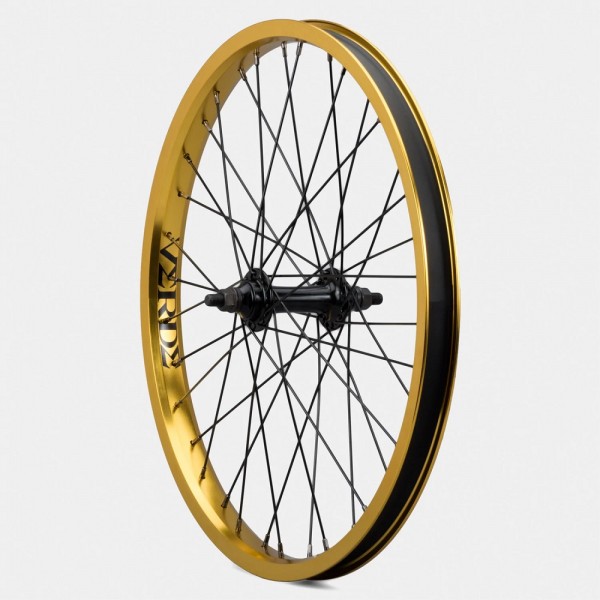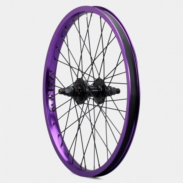 The Verde Regent sealed front wheel is high-quality, price point aftermarket BMX wheel. Quality construction begins with a low flange aluminum Verde hub with 3/8” male chromoly axle and sealed cartridge bearings. Double wall pinned 36-hole aluminum Regent rims are laced with 14 gauge black spokes with brass nipples. Compatible with Verde Regent thread-on hub guards.